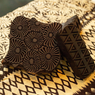 Once the cloth has been treated with vinegar and caustic soda to retain its colour it is dried in the sun in our balcony where we take a long look at it for planning out the next fun step - Block Printing on the fabric with our hand crafted wooden blocks.